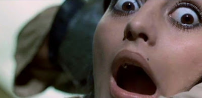 After going on and on about the colours she sees and even calling Giovanni a "monkey-face" at one point, Valentina witnesses a man (a creepy man) in large glasses kill a wide-eyed brunette. That doesn't so bad. After all, we all imagine seeing wide-eyed brunette's murdered by creepy dudes in glasses at one time or another during the course of our drug-addled lifetimes. Yeah, but do we imagine them being stabbed in the face multiple times with a spiky iron glove? I'll interpret your silence to mean that you haven't imagined that.