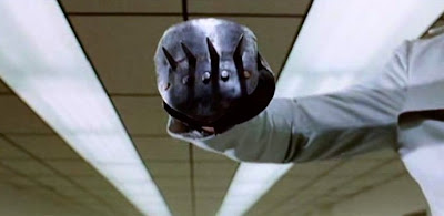 Have I mentioned that Valentina occasionally spots the spiky iron glove guy lurking about in the vicinity of her person, and that the film could be construed as a ninety minute ad for J+B scotch-whiskey? No? Okay, than I just did.