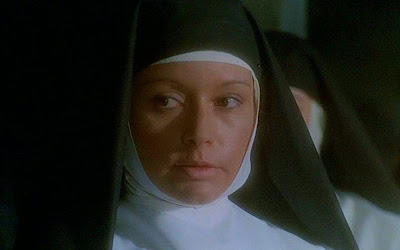 I don't know exactly what century this film is supposed to take place in, but I know they didn't have elastic bands or garter belts back then. Actually, they might have had garter belts, but these nuns definitely didn't have access to them. What am I babbling about? Well, what I'd like to know is, how did the nuns manage to keep their black stockings up? I'm gonna go out on a limb here and say, they held them up through the power of prayer. Quit joking around. What was holding them up? Okay, maybe they didn't use the power of prayer; even though I love the idea of keeping one's stockings up that way. But something was causing them to stay wrapped tightly to their pristine thighs, and I'm not going to rest until I find the answer.