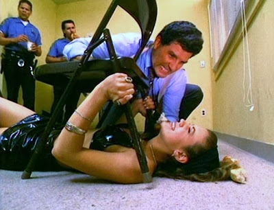 Unlike Sammy, it doesn't look like Wendy Adams' role as Ingrid Capulet is going to be as meaty. Then again, she does a wicked back flip (Cappy beats her up), looks foxy with grey hair, wears eye-searing pink tights around the house and shows off her scrumptious gams in a pair of black shorts at point one. So, it wasn't a total loss.
