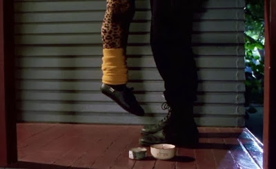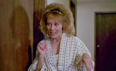 And secondly, the slow role out of "Bud the Chud," music by Nicholas Pike, lyrics by Cynthia Garris, and performed by Kipp Lennon begins in earnest. We get our first taste of "Bud the Chud" some time between the part where Bud chudifies Jasper, Steve's pet poodle, and the moment when Bud peers into the window of Susan (Jo Ann Dearing) as she's doing aerobics in a leopard print leotard and gold legwarmers.