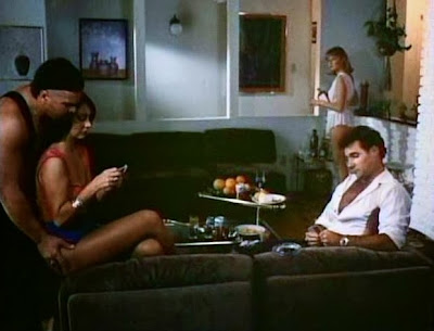 Moving on, a sort of sneak preview of the sheer awesomeness we're going to experience in the not-so distant future with Samurai Cop, you could view Hollywood Cop as a dress rehearsal for what's to come. Lacking the incompetent sheen that made Samurai Cop so great, Hollywood Cop has all the right ingredients: The prerequisite white cop-black cop partnership; a ponytail-sporting policewomen in lady police pants (unlike Peggy in Samurai Cop, who will fuck anything with a pulse, the lady police pants worn by the policewoman in Hollywood Cop, as Turkey finds out, aren't so easy to get into); sofas covered in leggy floozies; a gruff, Tums-popping police captain (hey, it's Cameron Mitchell); tons of bumbling henchmen; a synthy music score; and overlong car and foot chases.
