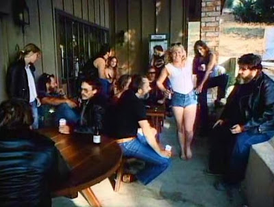 As horny henchmen are fighting over the right to feel up a leggy babe in a short black skirt by the pool, their boss, Feliciano (James Mitchum), shows up demanding to know how the plans for the upcoming raid of a communal ranch are coming along. According to one of the more sensible henchmen, the one not named "Animal," the raid is ready to go.