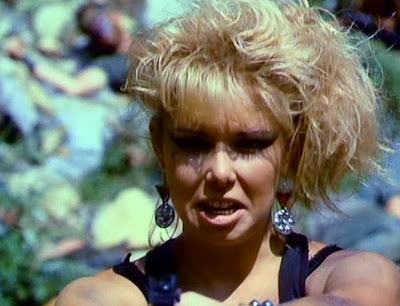 I know, the tough blonde gal in the yellow flats. Yeah, Sweet Cheeks, a.k.a. Lydia (Carolyn Beauchamp), the woman with the film's highest kill count. You gotta love a woman who can operate a machine gun while wearing flats.