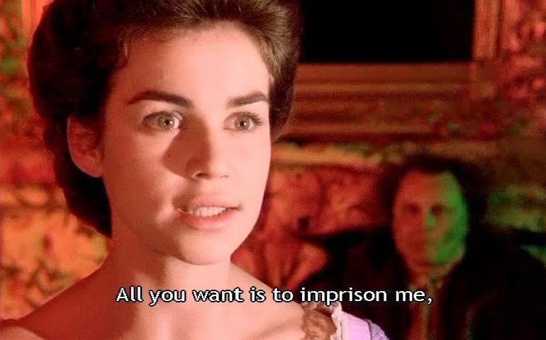 Don't be ashamed, I almost did too. I'll give you a quick example. It occurs when Ethel, who is shacking up with a Czech dissident named Milan (Lambert Wilson). It's somewhat complicated as to how Ethel ended up living with this Milan fella, but... It's not important. Well, it is important, just not to the point I'm trying to make here. Stay focused. There's a scene in Milan's apartment where Ethel puts on these gold pumps that literally had me bouncing off the walls...of my padded cell.