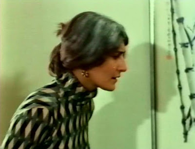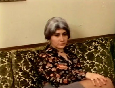 When the film's jaw-dropping climax is about to get underway, Victor, Claudia, Ada and Terry all gather together in the living room. And, yes, that putrid couch and those ghastly chairs are front and centre to witness the greatest twist ending in cinematic history. Appearance-wise, you wouldn't think something "jaw-dropping" was about to happen. But trust me, some weird shit is about to go down. It all starts when Victor asks Terry to get him a glass of cold water. I won't say anything else, as I don't want to ruin the surprise. Which is a shame, because I was looking forward to heaping a fair amount of misguided praise on Alex Mann, who shows up during the finale as a doctor, a doctor who wears a red blazer (he's constantly adjusting the sleeves) and sounds like a mobster.