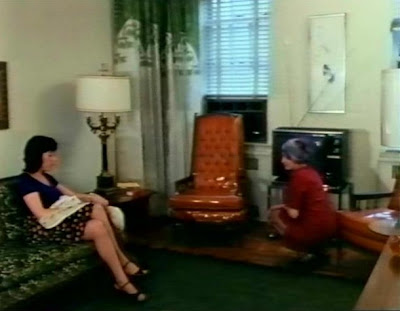 Frustrated by what she just witnessed, Terry sits on a putrid-looking couch, crosses her legs, and begins to admire to floral patterns that pepper her bluish skirt. Only problem with that is, her mother, Ada (Sandy Foxx), is crouching by the television, which is located between two equally putrid-looking chairs. Why is that a problem, exactly? Well, you see, Terry's mother is constantly nagging her about her unladylike behaviour. And, as you might expect, this annoys Terry like you wouldn't believe. Leaving the room in a bit of a huff, Terry decides to make a phone call.