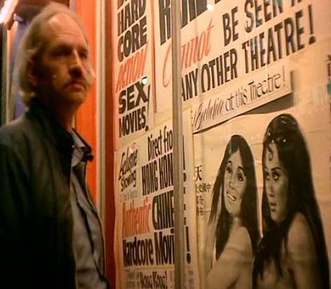 We have black stockings!!! I repeat, we have black stockings! Brushing his hand up Ellen's leg causes her skirt to swoosh upward. And in doing so, reveals the exact type of nylons Ellen is wearing. Savour this moment, my friends, as Alex de Renzy makes it's hard for us to enjoy their eventual copulation. Why's that, you ask? Um, hello? How can anyone enjoy sexual intercourse knowing Rocky de Sade is sitting outside? I know I can't, and I'm not even there. Despite Rocky's presence, Joe manages to achieve his first heterosexual orgasm in a long time (it's not made clear how long he was incarcerated for).