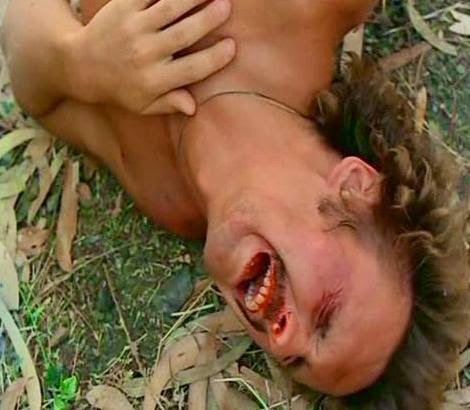 Putting collar on her, Rocky... Oh, I liked how Royce cleans his cock with a moist cloth before sucking it (very classy). Anyway, the now collared Royce gets a cigarette put out on her chest, a bottle shoved up her ass and beaten to a bloody pulp.