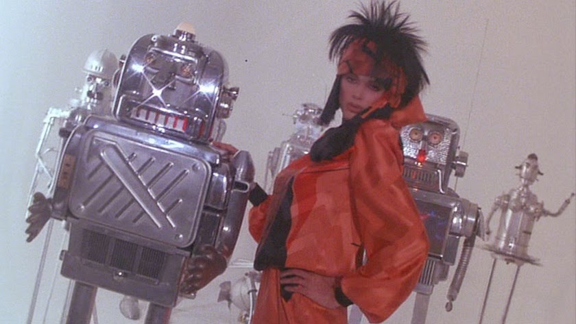 The best thing about this montage is the fact that "Angel of the City" drowns out Sylvester Stallone's dialogue. Screw that noise. The best thing about this montage is the sight of Brigitte Nielsen posing up a storm for a robot-themed, wig-tastic photo shoot. Work it, girl!