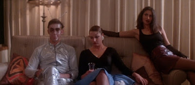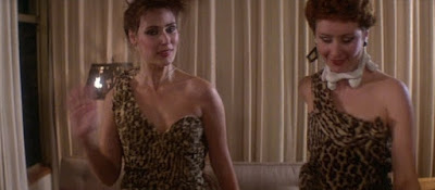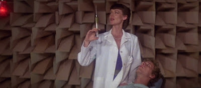 I have to admit, I'm having a bit of trouble deciding if the party sequence in Strange Behavior is one of the greatest scenes in film history or simply the greatest scene in film history. Nevertheless, the fanciful, on the cusp of being surreal tone of the party scene officially made me a fan of this movie. And get this, the scenes where a milfy lady scientist wields a syringe filled with iridescent liquid and a slightly chubby gal with a penchant for dismemberment makes with the dismembering are still to come.