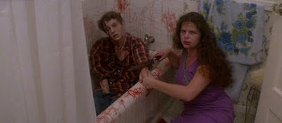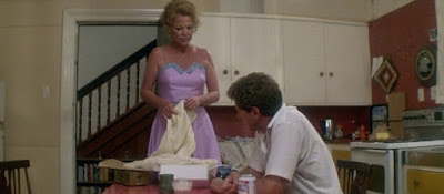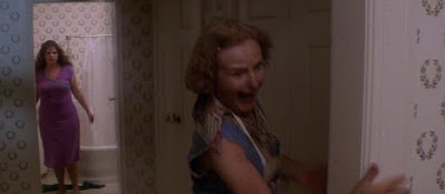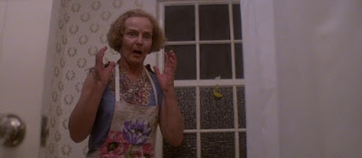 It looks like he's going to need all the help he can get, as Mrs. Haskell (Beryl Te Wiata) comes home to find some kid named Timothy dismembered in a bathtub. Now, I'm not sure what Mrs. Haskell's relationship is to Timothy (she's seen doing dishes for Pete and his father in an earlier scene), but nonetheless, her confrontation with Paula (B. Courtenay Leigh), a slightly chubby gal with a penchant for dismemberment, is downright sexy. (Um, Sexy?!? Paula stabs Mrs. Haskell with a knife, then chases her downstairs, where she slits her throat.) What's your point? I find the sight of slightly chubby women murdering women who not even close to being slightly chubby to be extremely arousing. You got a problem with that?