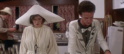 If there was any doubt as to whether Strange Behavior was worthy of my time, there isn't the moment Pete and Oliver knock on the door of a suburban house and Nicole Anderson (dressed as the Flying Nun) answers it. After she declares that she isn't wearing any panties, Peter and Oliver enter just as Lou Christie's "Lighten' Strikes" is starting to play.