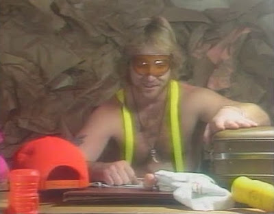 Since it wouldn't be a Gregory Dark movie without Jack Baker, the animated actor appears briefly as a man whose wife (Erica Boyer) won't let him fuck her in the ass. When the A-Busters show up, wearing their trademark orange-tinted goggles, work boots, yellow suspenders and orange baseball hats, they grab Erica Boyer and begin to violate her. Eventually, the A-Buster's cocks wind up in Erica Boyer's vagina and butthole simultaneously. I thought it was odd that the A-Busters felt the need to penetrate Erica Boyer vaginally as well. I mean, they're the "A"-Busters," not the "V"-Busters." Whatever, they ejaculate seminal fluid all over Erica Boyer and Jack Baker pays them. Wait, did Jack Baker just pay two guys dressed like gay disco plumbers to rape his wife? Again, I'm not quite sure what kind service the A-Busters actually provide.