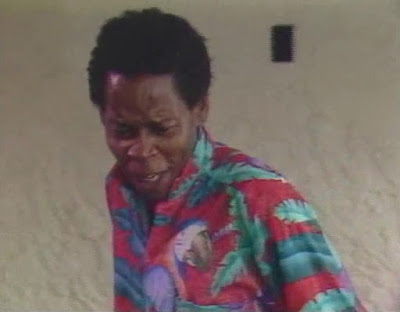 We get more information about their unique methods in the next scene, when we're whisked into the offices of the A-Busters. From what I could gather, the A-Busters seem to be two guys, Tex (Marc Wallice) and Doc (Steve Powers), who share an office (like ACME Proctological, their desks are made out of cardboard boxes). And every once and awhile, their phone would ring. This usually prompts them to yell "Ayyyyyyy-Busters!" When they do this, you can almost guarantee that some poor woman is about to get her buns busted.
