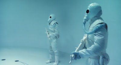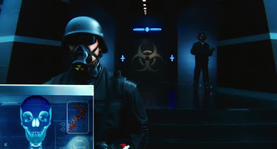 The other problem was that all the henchmen wore gas masks. This made their deaths even more meaningless. Granted, they looked cool (the henchmen costumes are the film's best non-Milla midriff element), but their outfits robbed them of their humanity. To make matters worse, hundreds of them are killed off-screen. I realize the ADD-infected robots who edited this movie were trying to break up the monotony of the fight scenes. But by not showing some of the battles Milla Jovovich engages in during her one-woman siege of The Archministry, the film signaled to me that Milla was never in any real danger.