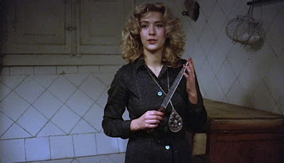If I had to point out a flaw, it would have to be the handling of Sandra Alberti's white nylons/strappy heals. Never shot in a manner that I found satisfying, the way they (the filmmakers) seemed to go out of their way to not give us any close-up shots of her white nylons/strappy heals was frustrating. That being said, I did appreciate her overall look (on top of wearing white nylons and strappy heals, Mary wears a chic red coat - with a matching purse - and a chunky necklace), and I found her cannibalistic dining habits to be wonderfully dog-like. I know, cannibals rarely ever use a knife and fork. But still, I liked the way she went to town on those tasty organs (which, I assume, used to belong to the guy in the freezer).