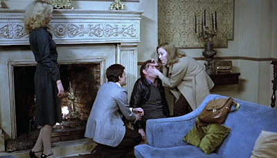 On the other hand, eating your food like a dog has never been cool. And that's exactly what Annie catches one of her hosts doing at one point. A normal person would have politely excused themselves after witnessing this canine display and ran for the exit when the opportunity was right. But since it's the... (Yeah, yeah, it's the 1970s. People put up with all sorts of weird ass nonsense back then.) Either way, no such opportunity arises, and Annie and Andy, and, I suppose their dog, Blackie, are stuck there.