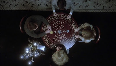 At the end of the day, the question every Spaniard must ask themselves is this: Do you want to continue living an uneventful life in your matchbox-sized Madrid apartment, or do you want to embrace the dizzying world of clothing optional Satanism? Luckily for us, Annie and Andy choose the latter. Well, they don't exactly choose the latter. The Satanism lifestyle is more or less thrust upon them. Nevertheless, Annie and Andy end up partaking in a Ouija board session (or, I should say, Ouija table session - now that's a nice Ouija table), which leads to playful bathing, rough lesbianism and the mother of all creepy doll attacks.