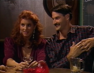 Unlike the coffee cutting gag, the language barrier bit between Sam and Juanita is actually employed several times over the course of the film. (Several?!?) Okay, maybe three or four times. But still, it's more than two. Anyway, Juanita ends up in a three-way with a couple of truckers (Billy Dee and Jon Martin) and screwing Robert Bullock's Al the bug guy, who can be usually found hanging out in The Rusty Pipe Lounge, which, I have to say, is nowhere as cool as The Reptile Room, the motel-adjacent club from Squalor Motel.