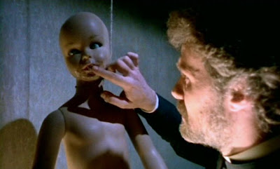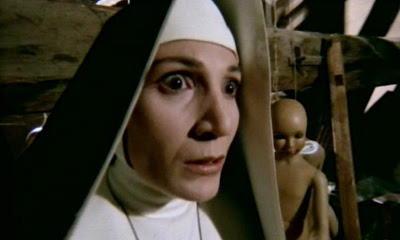 What about Franca Stoppi? What about her? She must do something besides look delightfully sinister in her habit? Let me see. Oh, yeah. There's this flashback sequence that has Franca Stoppi employ one of the most trouser-moistening head turns while holding a recently scalded baby in recent memory. Imagine being on the receiving end of one of Franca Stoppi's trademark head turns, I would do more than just pee my pants (too much information?). It should go without saying, but the synth flourish that accompanies Franca Stoppi's head turn was awesome. As was the part where Franca Stoppi tells Father Valerio that men only emit empty screams when they're stabbed, yet when women are stabbed, they produce children. I couldn't have said it better myself; pure poetry.